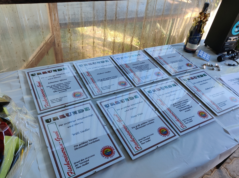 Dieses Jahr war ein besonderes Jahr für den Fischereiverein Gruol. Nunmehr 40 Jahre halten unsere Mitglieder bereits unsere Anlagen und unser Hobby zusammen und in Schuss. Manche Mitglieder sind sogar schon seit der Gründung mit dabei! Zu diesem Anlass wurden nun auch einige unserer Mitglieder geehrt, nicht nur von uns sondern sogar vom Landesfischereiverband.
