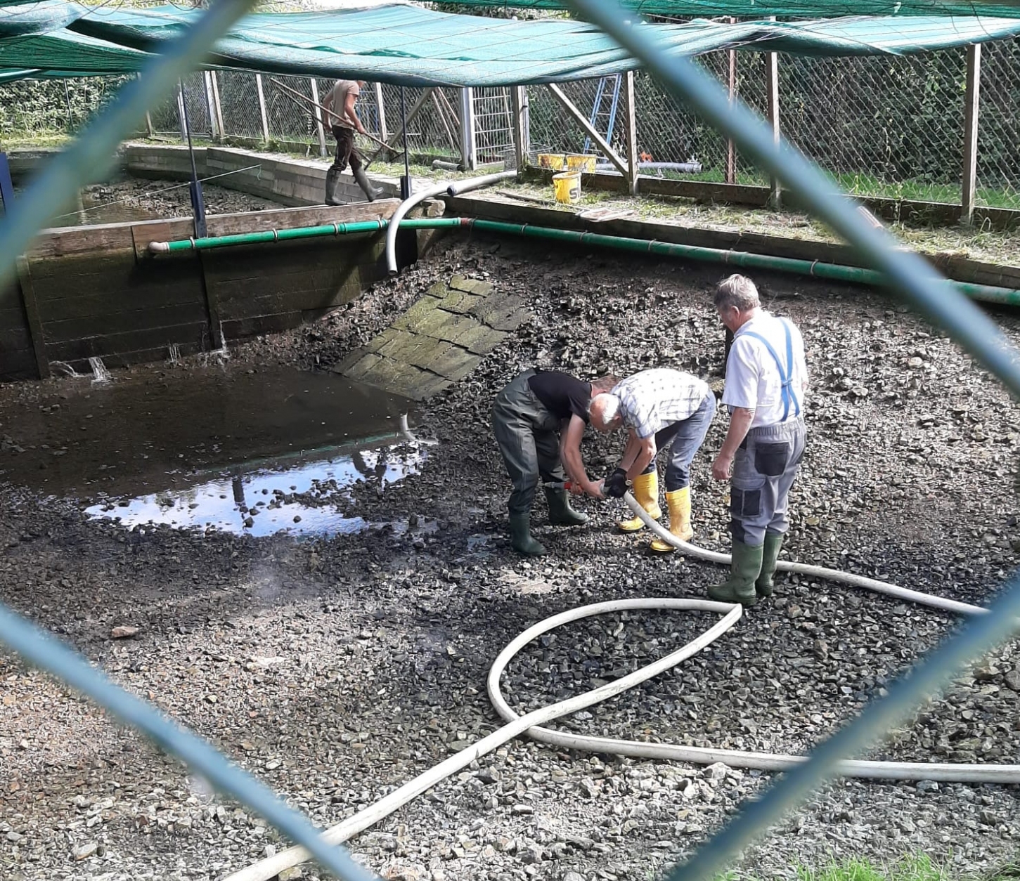 Wie jedes Jahr wurde auch dieses Jahr der neuen Forellengeneration Platz gemacht. Hierfür müssen nicht nur unsere Aufzuchtbecken gereinigt, sondern auch die letzte Generation Forellen versetzt werden. Dies bedeutet viel Arbeit!