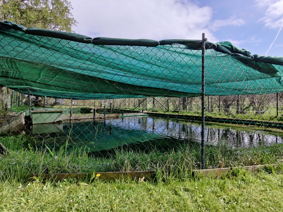 Unsere Aufzuchtsbecken beherbergen unsere beiden Forellengenerat-ionen. Da sich Forellen jedoch bevorzugt in sehr klarem und vorallem kalten Wasser wohlfühlen müssen wir jedes Jahr im Frühling unsere Aufzuchtsbecken vor der Sonne schützen.