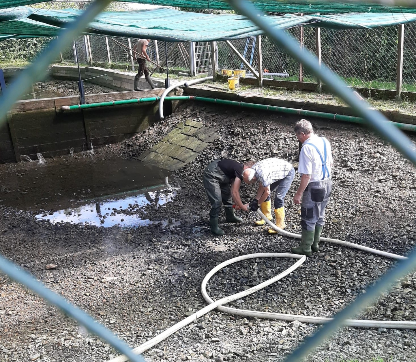 Wie jedes Jahr wurde auch dieses Jahr der neuen Forellengeneration Platz gemacht. Hierfür müssen nicht nur unsere Aufzuchtbecken gereinigt, sondern auch die letzte Generation Forellen versetzt werden. Dies bedeutet viel Arbeit!